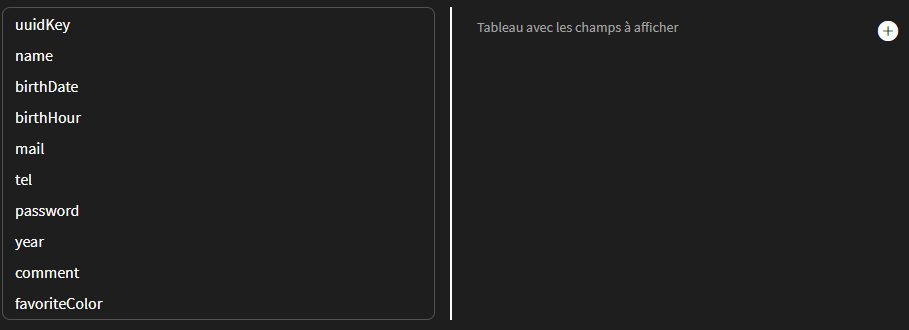 Permet de définir quelles sont les colonnes visibles dans la listbox et lesquelles ne le sont pas. Pour cela il suffit de glisser-déposer la propriété à afficher sur la partie droite.