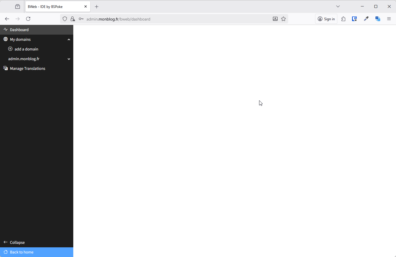 - ✓ BWEB component installed with admin.myblog.fr domain configured